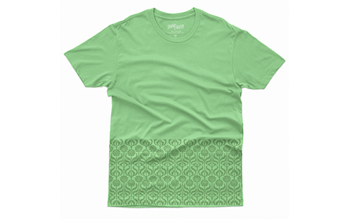 El esgrafiado que cubre las partes laterales de la fachada tiene un motivo orgánico y simétrico, con colores verde y azul, compuesto por una forma de flores con tallos, que se repiten de manera secuencial, aunque intercalada. La textura propuesta está basada en dicho diseño.